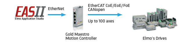 EAS II는 Elmo서보 드라이브와 마에스트로 모션 컨트롤러의 모든 기능을 프로그램 구성, 유지 관리 및 분석합니다. Elmo하드웨어와 소프트웨어 통합은 모션 디자이너가 특정 motion control 요구 사항을 빠르고 간단하게 변환할 수 있는 소프트웨어 사용성을 요구합니다. 새로운 기능 인터페이스 디자인은 기능, 기능, 구성, 모션 프로그래밍, 시스템 통합 및 모니터링 작업을 안내합니다.